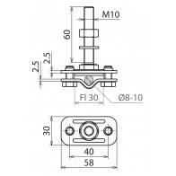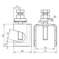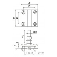 Clemă de conectare conform DIN EN 62561-1, pentru conectarea conductoarelor plate la barele de împământare. Versiune cu șurub M10 pe o parte.
